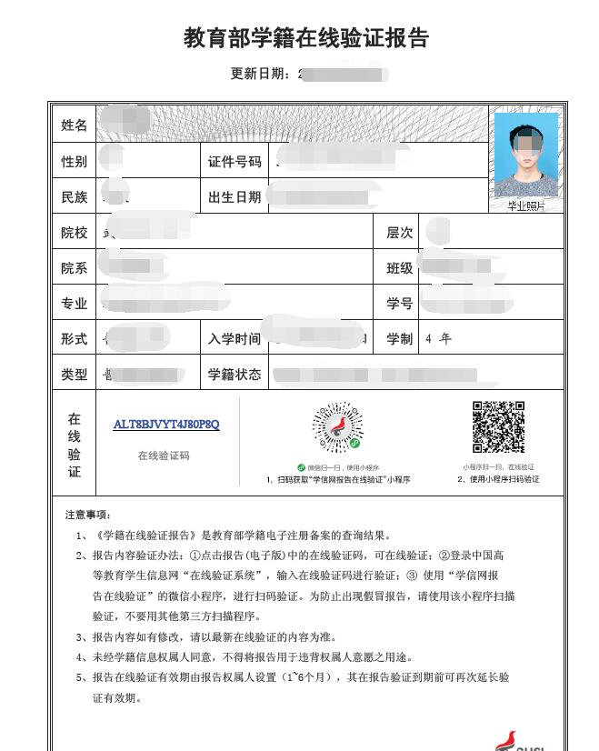 应届本科生(包括普通高校、成人高校、普通高校举办的成人高等学历教育应届本科毕业生) | 《教育部学籍在线验证报告》 |